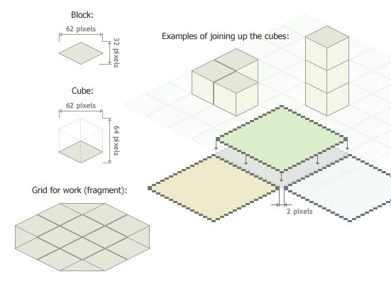 Вот обычно по этим правилам рисуют изометрию. Но бывают и исключения.