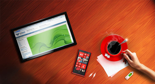 В целом хочу сказать, что в вашей работе есть и плюсы! Это то, что прямоугольные предметы сочетаются с круглыми! Притом в неравном количестве! Всегда должно быть чего-то больше, чего-то меньше! Также есть совсем мелкие предметы. Пусть это даже непонятные полоски сахара Зато у автора есть чувство юмора Текстура на стол наложена под углом. На мой взгляд, это хорошо, интересно! Хуже было бы просто горизонтальное наложение. Скучнее! Теперь о недочетах. Да, тень вы слегка побоялись наложить. Есть также несоразмерность в предметах. Обидели нокию Телефон побольше должен быть. Предметы на одной линии, практический под одним углом. Захотелось их подвигать. Хотя может у вас наверху будет надпись? Еще экран планшета скучный! Не хочется на него смотреть. А ведь именно на него можно попробовать сделать акцент. С красным хорошо сочетается зеленый, я наложила первую попавшуюся зеленую картинку из инета. Ну и пятно темное справа лучше слегка приглушить. Еще неплохо попытаться убрать периодичность полосок дерева в текстуре стола: сделать некоторые потолще, некоторые поуже. Ну и можно добавить провод от планшета на пустое пространство сверху. Удачи вам!