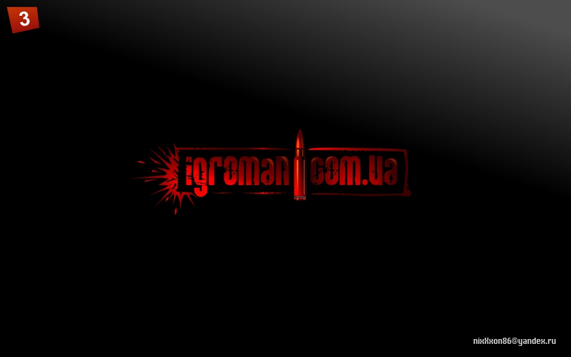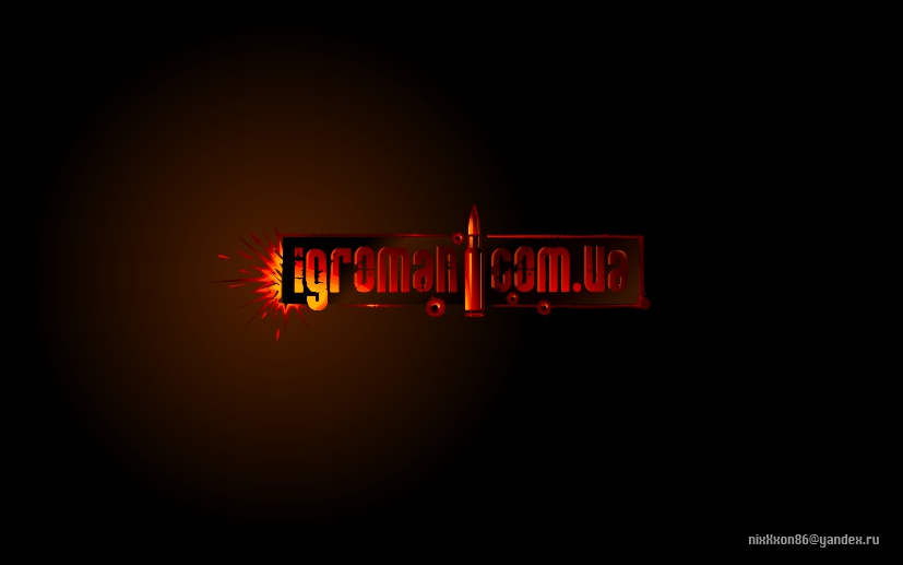 nixXxon86, Никита, вариант с огоньком по цветам лучше. Потому как и так будет на темном фоне логотип, читается нормально, но вот о патроне Summer_Rain заметил верно. Он статичен, это не есть гуд. Как тебе идея того, чтобы патрон проходил между буквами (от него был небольшой шлейф), а буквы немного в стороны разлетались (только крайние с патроном).