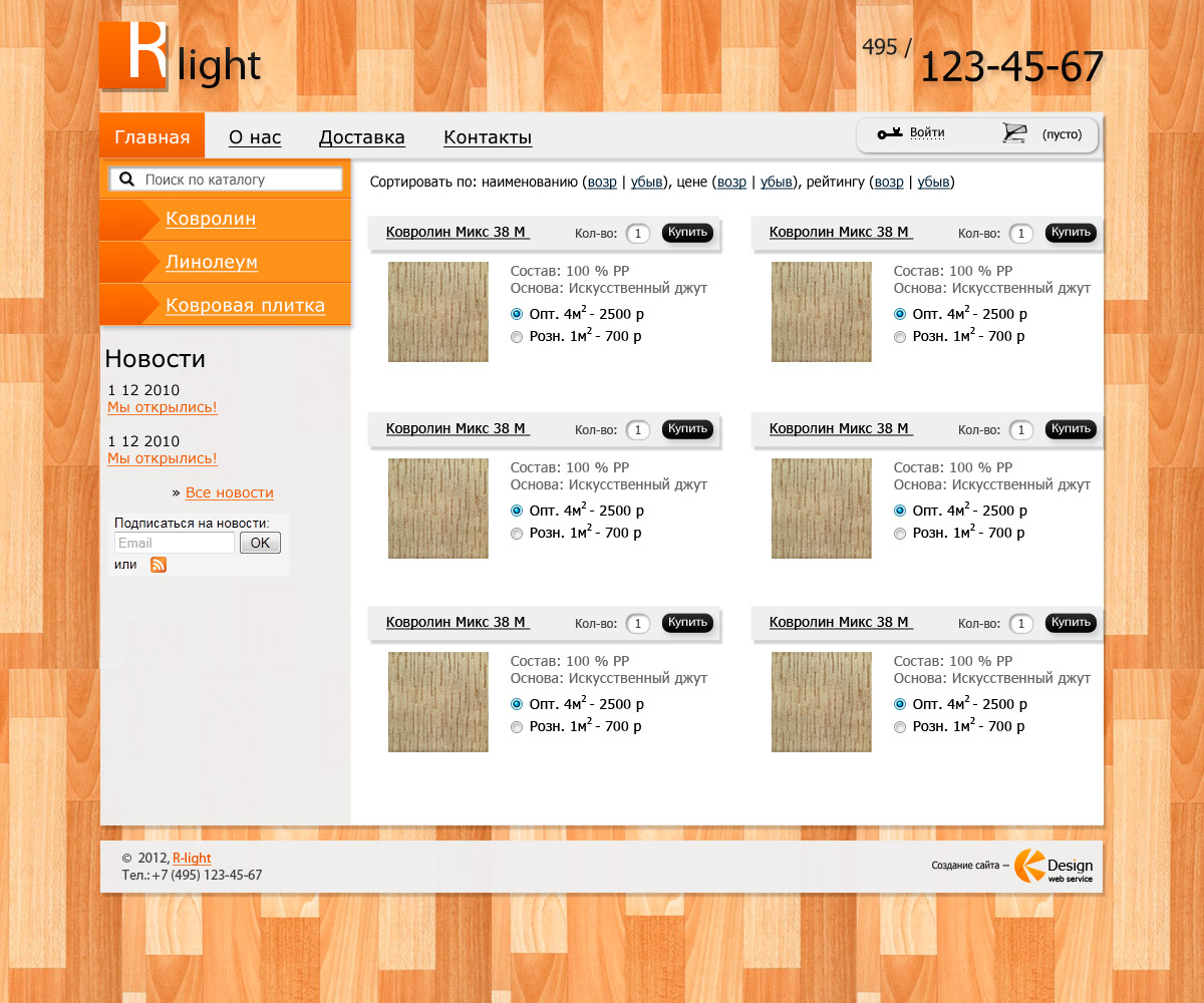В лого буква уехала куда-то. Если это так и задумано, то крайне неудачно. В новостях непонятная последовательность цифр 1 12 2010. Видимо шифр. В подвале R-light, в шапке Rlight.Если light означает легкий, то почему лого и сам дизайн такой тяжелый, если означает светлый, то почему черным цветом?