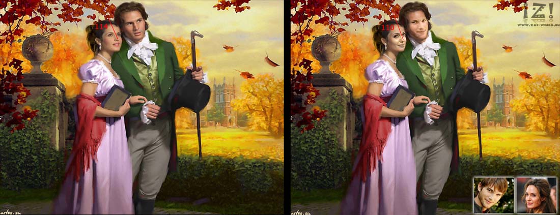 Z_A_P, по поводу первого случая: только правильный ракурс и свет! Любые трансформации в шопе дают "мыло", поэтому качественного преобразования сложных форм под ваши задачи добиться, к сожалению, невозможно. На примере плохо вписаны и лицо женщины, и лицо мужчины. Вы отложите работу на пару дней, а потом к ней вернетесь - сами увидите ошибки. Не забывайте, что важен не только источник света, но и окружение - следите за рефлексами.
