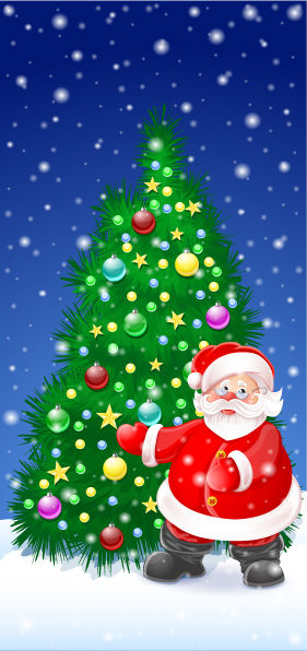 Елочка симпатичная, только почему-то макушка не украшена и размеры иголок и снежинок какие-то гигантские. а Санта какой-то совсем без эмоций . и совершенно непонятно, что он делает, куда указывает и зачем.