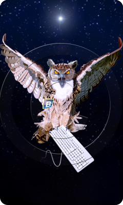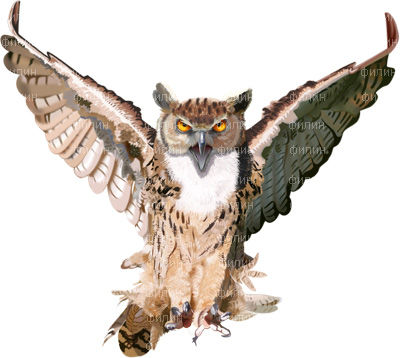 Вот только, насколько я понимаю, филин изображен в момент охоты(распустил когти и т.д.), а значит, должен смотреть на убегающую добычу, а не прямо перед собой, закатив глаза кверху.