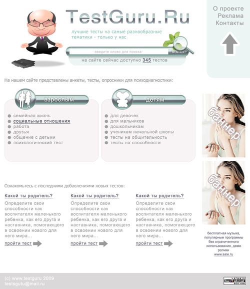 Надпись (или это логотип такой) слишком огромная, мужик не нравиться ..... на таком сайте я бы долго не задержался