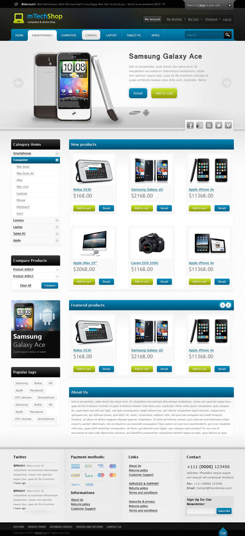 MatArt, на верхней пикче сделал мыло, и все-таки если пишешь самсунг, не надо htc лепить)) Это вроде ерунда, но все же... в целом, логику соблюдай и используй хорошие изображения - но растешь ты это да-красивый макет (во многом засчет правильных и не зажатых отступов! Может только плашки под заголовками сделай другого цвета-а то они как синие кнопки-это нежелательно, они же не кликабельны)