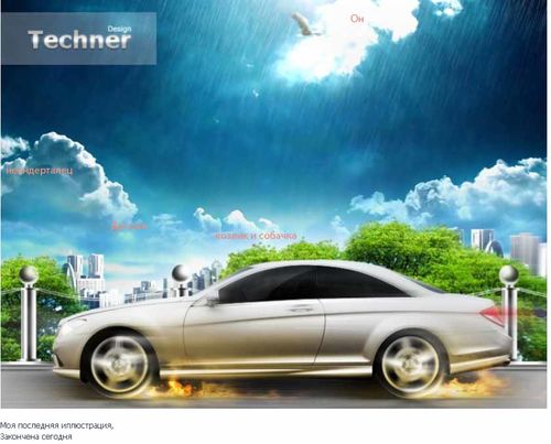 Автомобилю подходит больше индустриальный фон. Но и этот прикольный.