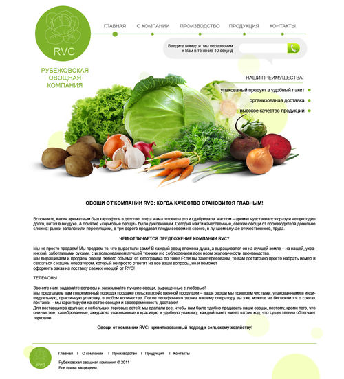 Первая колонка уже с названием "Продукция компании rvc", если в тексте есть упоминания о каком-то из видов продукции (капуста, картошка и тд), ставите на нее ссылку которая ведет в каталог именно на этот товар. Под тексто ссылка "каталог продукции"