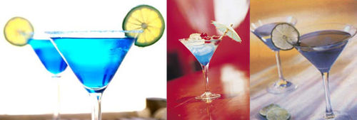 Вот, к примеру, с желтой долькой лимона (лайма), на красном фоне он же или на желтоватом уже мнение о нем другое, хоть и большинство из нас его и пробовало и знают какая это гадость ... (на первой картинке его так и хочется выпить в жаркую погоду, т.к. он похож на живительный прохладный напиток, на последней просто цветов не хватает даже лимоньчик блекловат но все же выглядит этот коктейль уже иначе).