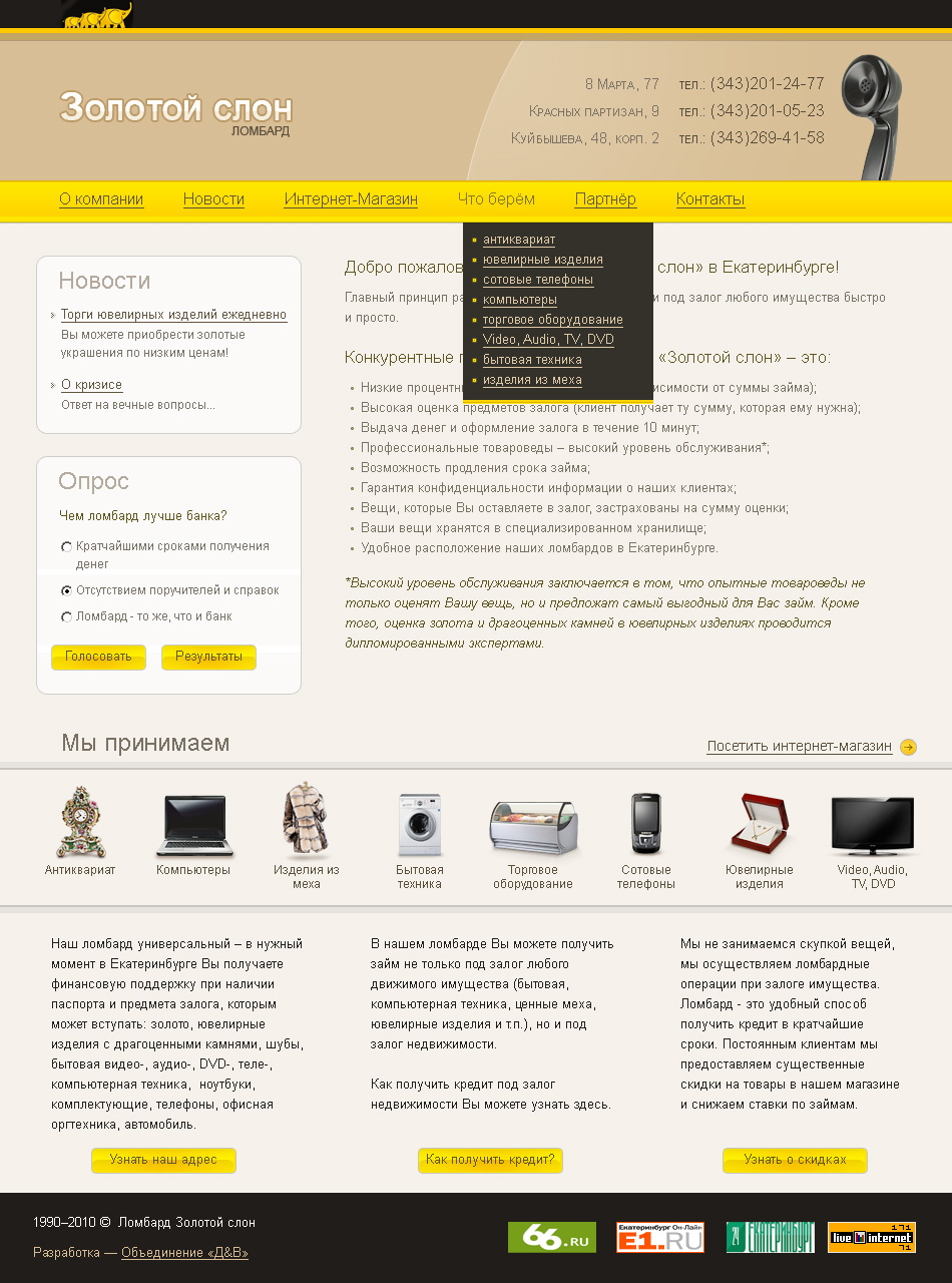 Выкладываю на вашу оценку и надеюсь конструктивную критику редизайн главной страницы сайта ломбарда (на сайт до редизайна можно посмотреть по адресу ).