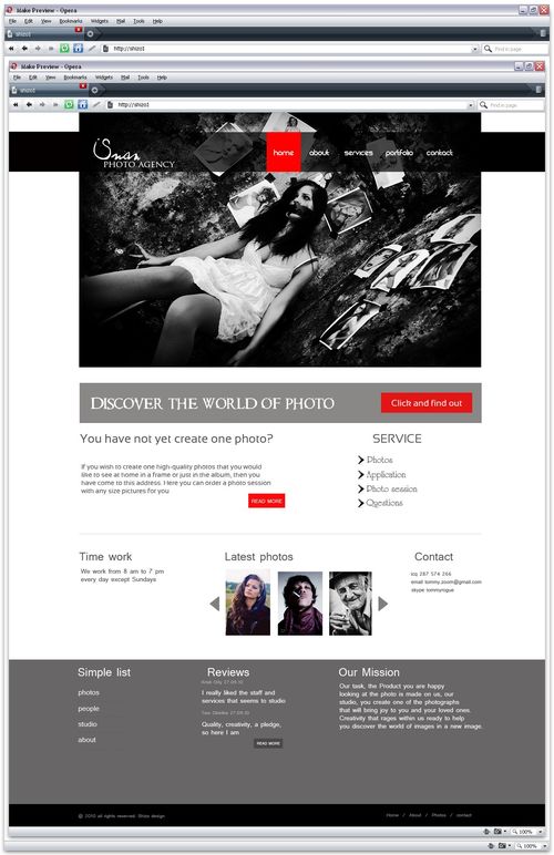 Насчет негатива верно подмечено. Мне-то нравится - мне вообще нравится чернуха, но если это ресурс для обычных юзеров, которые любят воздушные шарики, мелодрамы и детей - то макет полный отстой. От этой бабы на фотке все шарахаться будут, у нее рот заклеен, тушь течет, она плачет
