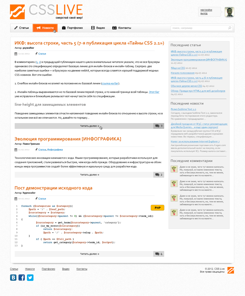 ArtPro, На счёт меню справа от лого, дело в том, что там мало места. Дизайн сайта планируется адаптивный, поэтому из-за резиновости могут быть траблы. Плюс к этому пунктов может быть больше.На счёт "Читать далее" подумаем)