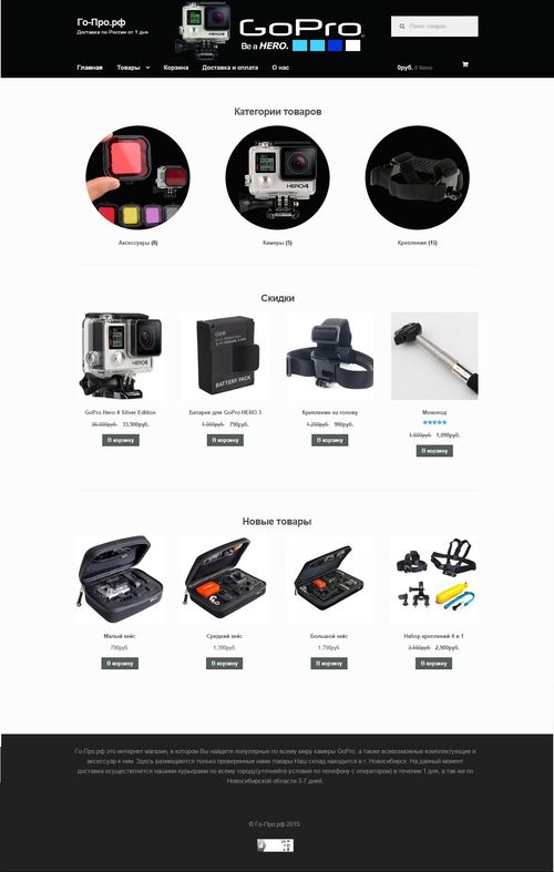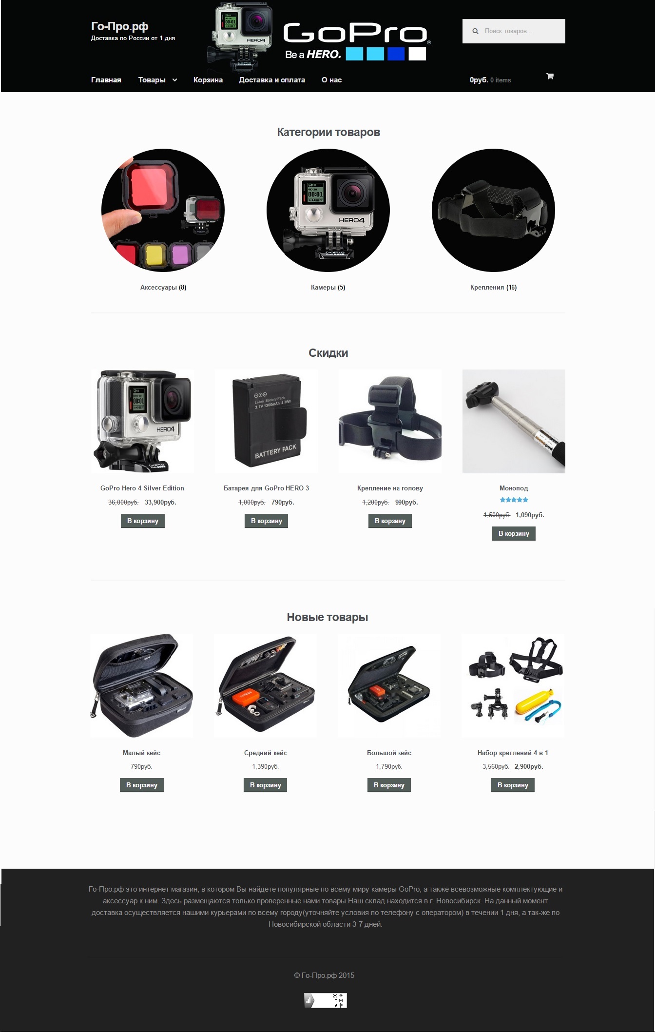 6) Между названием сайта (домен) и Доставка по России - вставить что-то вроде "Камеры GoPro и комплектующие", чтобы было понятно, что на сайте. Это называется дескриптор, хорошо работает.