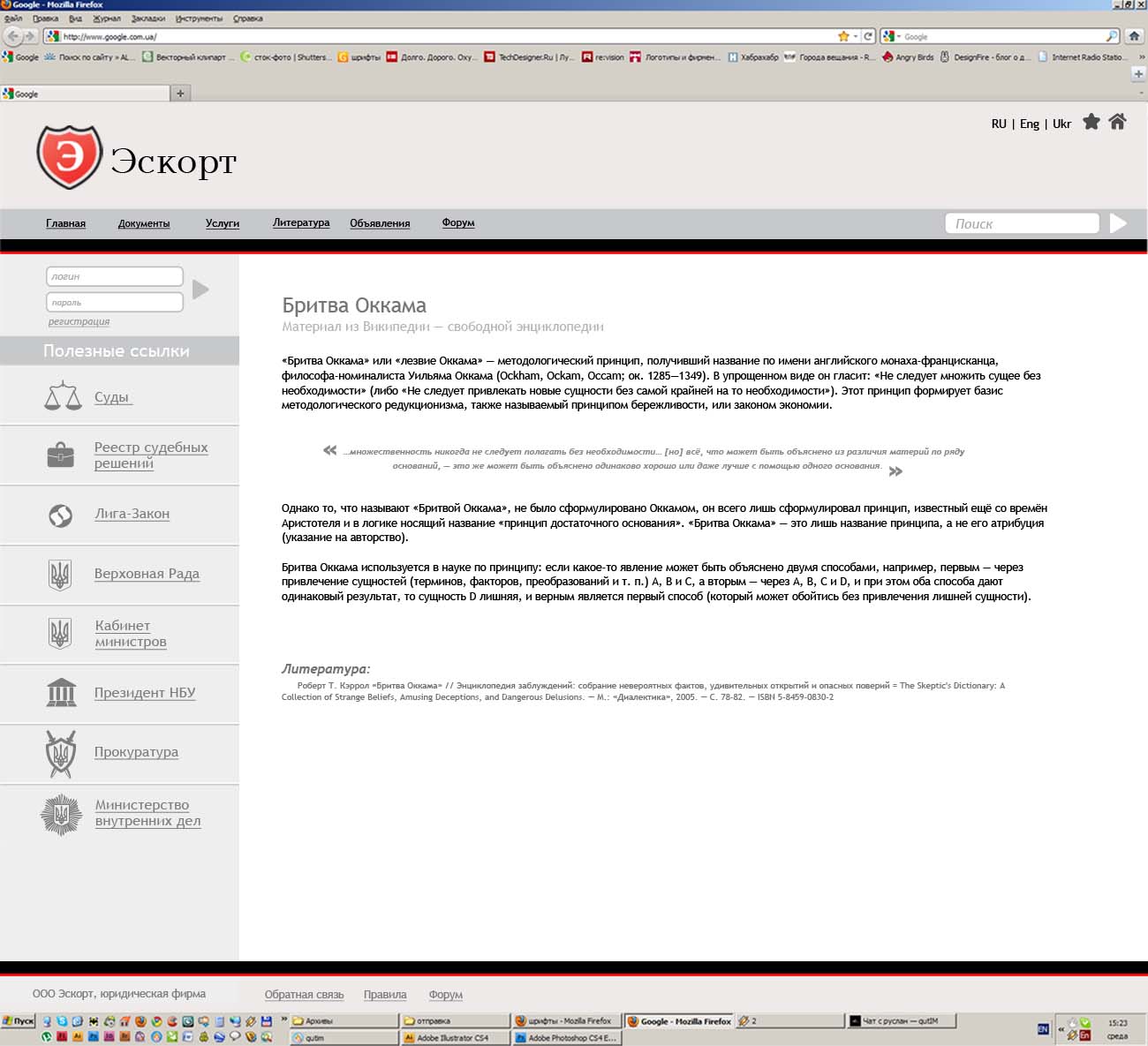Гораздо лучше. Я бы еще убрал Форум из подвала и добавил знак копирайта с годом. Обратную связь и правила прижал бы вправо или выравнять по уровню основного текста. И лого я бы выравнял по одному уровню с левым вертикальным меню.Почему RU - все большие, а Eng и Ukr - нет?