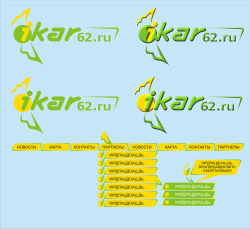 5. Слово «икар» — один стиль, «62.ру» — второй, крылья — третий, меню — четвертый, объем — пятый.
