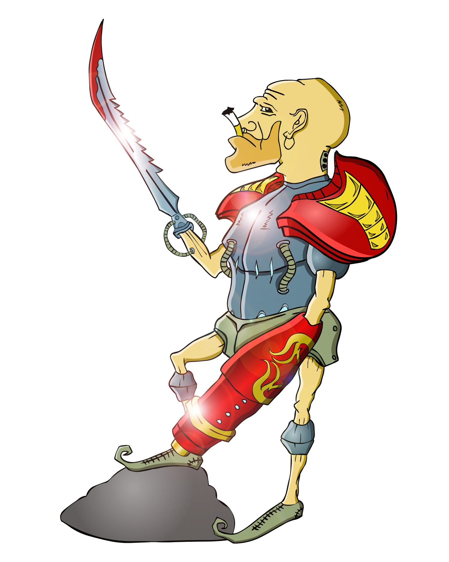 Судя по жиденьким ручкам/ножкам - совсем не крепкий. И не гладиатор. Хотя у него ж пушка и ножик есть.А раз во флеше - можно взглянуть на анимированного такого?