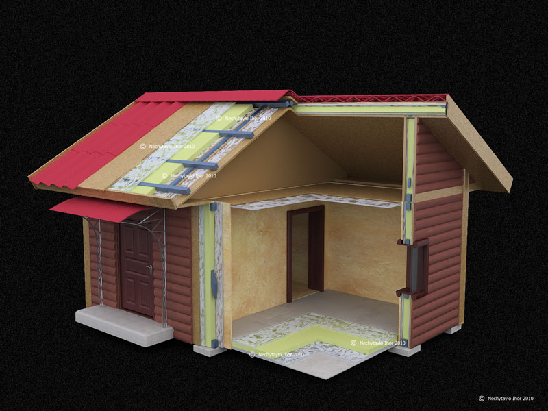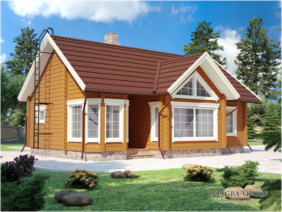 Сама модель очень даже неплохая. Ну разве что крыльцо — по всей логике оно должно быть тоже деревянным, а у Вас какая-то мраморная плита + странная дырка между крыльцом и дверью (представляете, как свистеть будет). Металлические подпорки козырmrf я бы тоже сделал понаряднее, очень уж они трехугольные.))))))))С визуализацией похуже — текстуры я бы использовал более натуралистичные (сайт с офигенными текстурами: посилання) и сделал бы тени пожестче.
