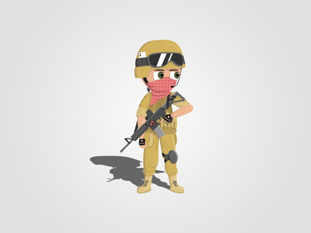 CyberGeek, наверное левая рука должна быть за автоматом, немного хаки текстур нарисуйте на форму, и лицо сильно доброе... А так добрый мальчик-солдат получается, сильно добрый...