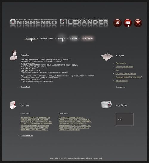 Еще. Мне не понятно. Если весь сайт на русском языке, то зачем вы свое имя пишете на английском? Смотрится очень глупо.