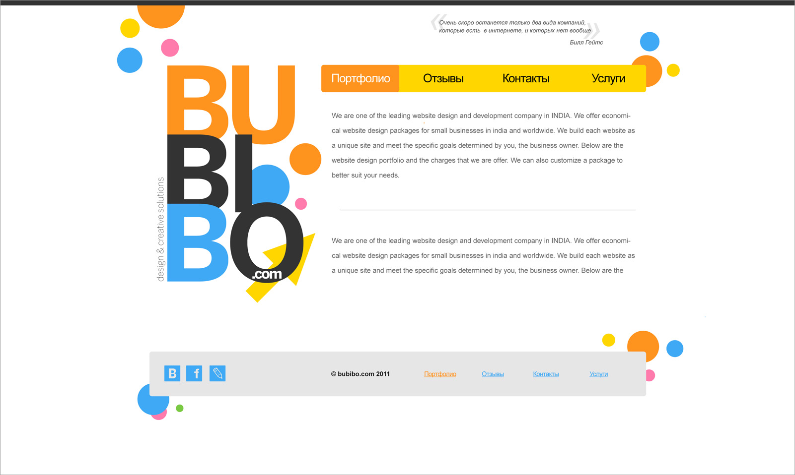 Футер сайта - серая рамка, не вписывается, - возможно стоит сделать ее полупрозрачной, так будут видны круги под ней. Логотип понравился - кроме боковой подписи - design ...