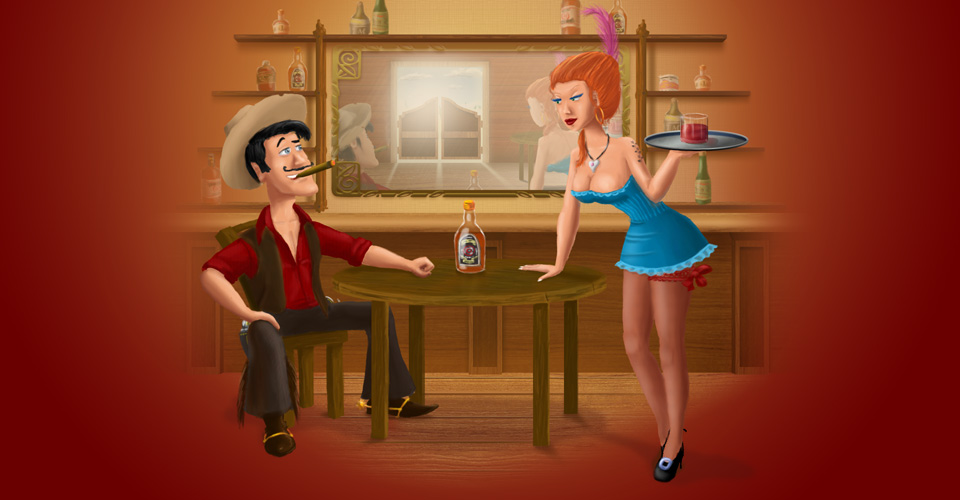 Тс, может мое мнение в чем то поможет, а может быть будет бесполезно. Итак: чтобы официантка была достаточно соблазнительна, но не вульгарна, от нее должно идти притяжение к ковбою. В данный момент у нее поза - "титьки навыкат". Но лицо отдалено, притягательного взгляда нет, да и женщины сближают дистанцию в момент общения и симпатии. Ещо: надобно бы немного ракурс изменить, так как не только грудь красит даму, но и ее попенция может произвести не меньшее впечатление, а где она у Вас, не видно.ну и напоследок, странновато как то - у ковбоя стоит бутыль на столе, а в подносе стакан, может надо наоборот?