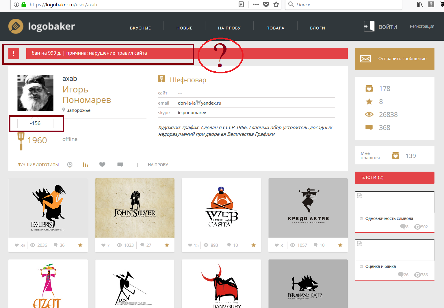 Цитата (AXAB):На Логобейкере запрещены презентации...Врать не буду - впервые слышу. Но для интереса посмотрел, активность не такая жаркая. Так же найдя ваш аккаунт, увидел под первой же работой больше половины комментариев были удалены после вашего ответа, что соответствует сказанному посилання. Хотя возможно вы всех профессионалов заткнули, аргументируя чем-либо, но почему-то мне так не кажется имхо.