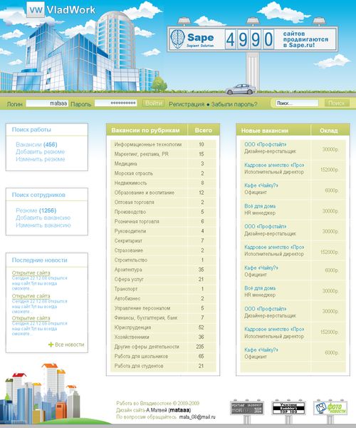 хотелось бы еще увидоеть как выглдит страница внутренняя самих вакансий и можно смело предлагать аналог фарпосту владивостокскому ))