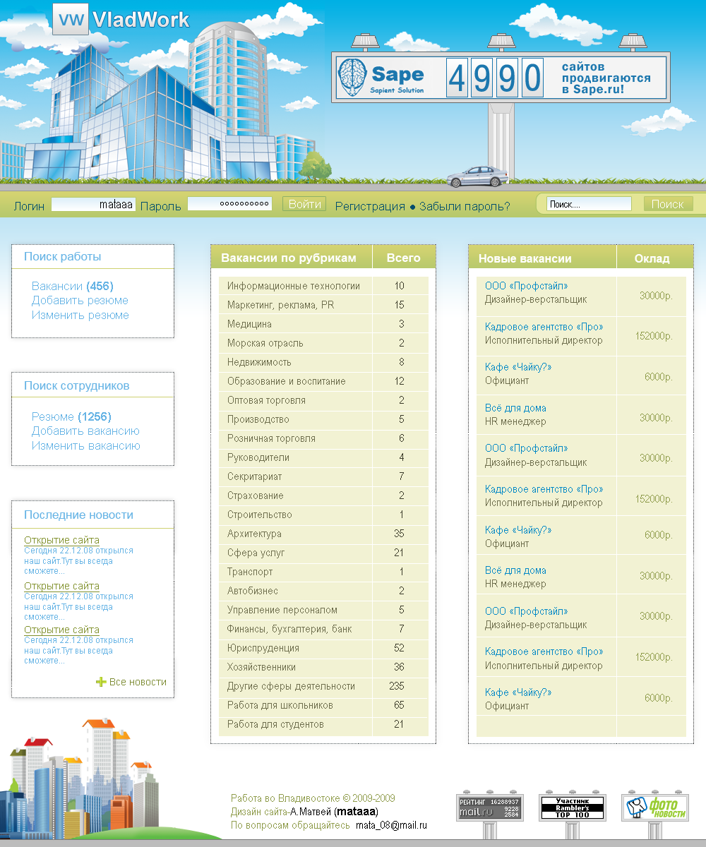 хотелось бы еще увидоеть как выглдит страница внутренняя самих вакансий и можно смело предлагать аналог фарпосту владивостокскому ))