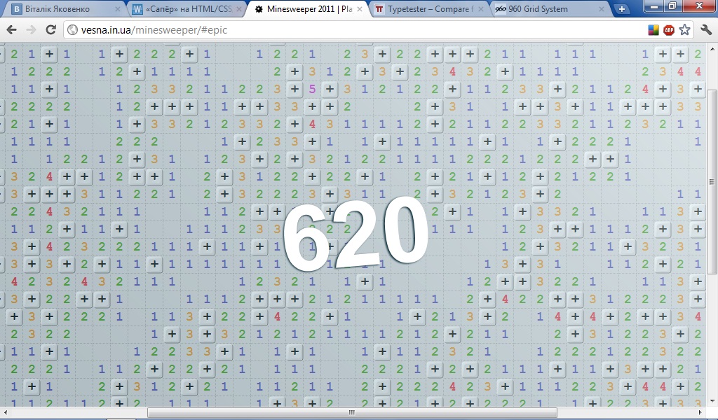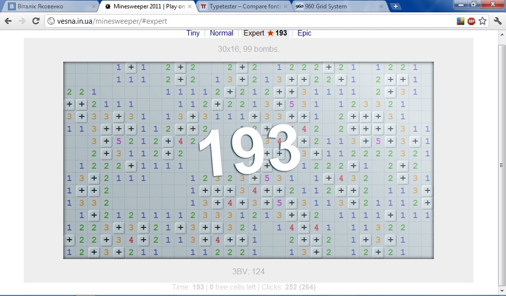 Обнаружил только одну неточность по сравнению с классикой - в обычном сапёре мины расставляются после первого нажатия, то есть первый раз гарантированно идёт не в бомбу