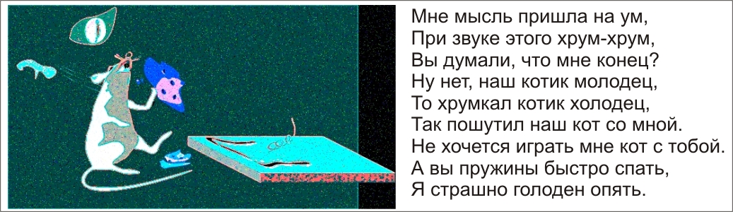 В реале меня упрекали несколько раз за то, что в прошлой версии "психоделики" буд-то бы я "убил" мышонка. Спешу сообщить, что мной выполнена "заплатка" к той работе . Весь текст не привожу, там были тоже изменения. Здесь только финиш. Надеюсь финиш и моим экспериментам с психоделикой. (уж какие получились :P )