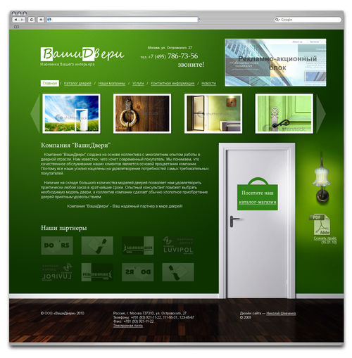 На конкурсе пока не дали ни названия компании - ничего вообще. Но мне так захотелось поработать, что сам все напридумывал, а рыбу покопировал с сайта (ООО "НАШИ ДВЕРИ".