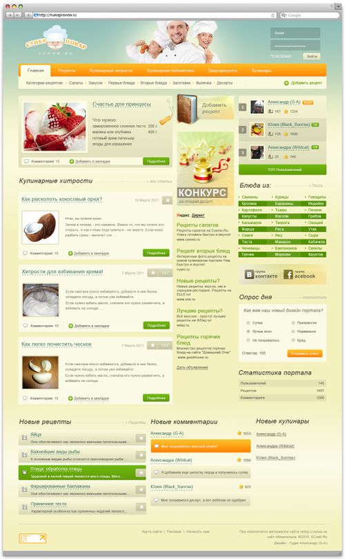 7. Зачем звездочки в новых рецептах? Как человек может поставить рейтинг, если он даже не знает, что это такое? Вместо иконочек лучше бы фоточки имхо и пускай их будет 3, а не 5, но с нормальным текстом.
