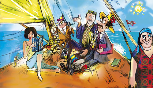 Хоть это и комикс, но не совсем ясно сидят ли люди на корме парусника или они сидят на горке какой-то насыпи. Нога у девушки с газетой сливается с цветом того места на котором она сидит, у девушки с газетой взгляд бы по более радостный))))))))) А так супер!