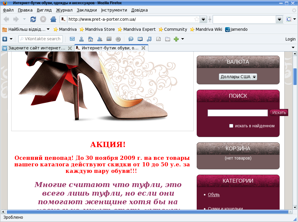 Ужасно. Автор, увы, не знаком с особенностями Интернет-магазинов. Корзина и новинки товаров запрятаны глубоко вниз.Да и с версткой косяков предостаточно.
