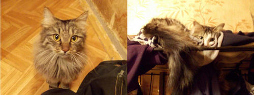 Алиса (спит на полке) родом с какого-то питерского склада. Тимоша (сидит на полу) не знаю откуда родом. Дети играли с ним у проезжей части, когда он был еще совсем маленьким.