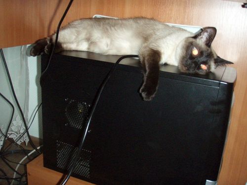Мой зверь тоже перед монитором любит сидеть. Особенно, когда ему от меня что-то надо, а я занята работой и не обращаю на него внимания.