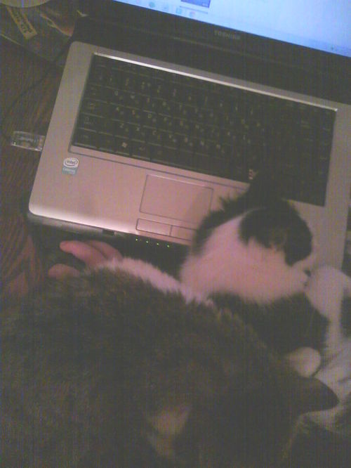 Мои коты тоже любят спать на ноутбуке, когда я за ним работаю))
