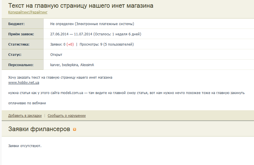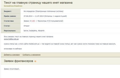Заходим в каталог, нажимаем по первому фрилансеру, и по его первому отзыву... о то что надо, приватный проект