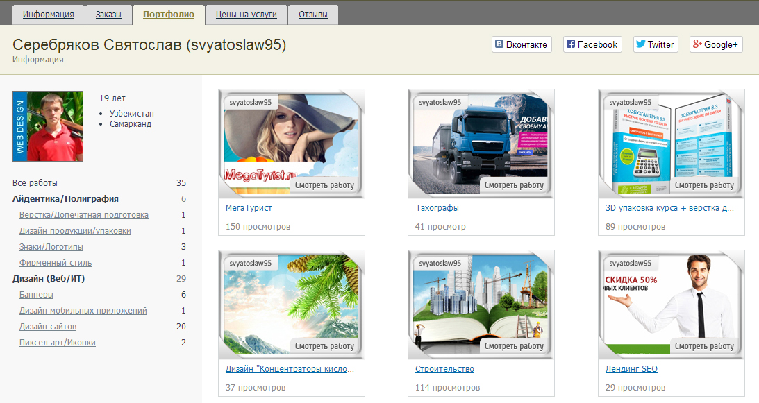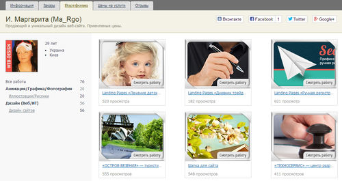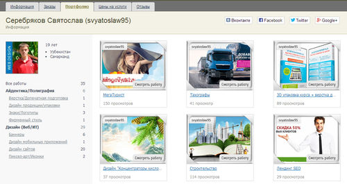 Но здесь совсем другой случай: украдены не только превью - оформление в портфолио, но и чужие работы позиционируются, как свои. Разве это профессиональный подход? А о личных качествах и гарантиях, даже небольшого, сотрудничества с таким человеком и говорить нечего. И уж, конечно, действия таких субъектов не совместимо с работой серьезного сервиса удаленной работы.