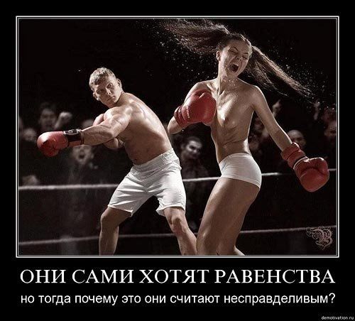 Цитата ("mirekua"):Цитата ("epavlovich"):Я как-то особенно не наблюдаю категорического неравноправия между мужчинами и женщинами)).