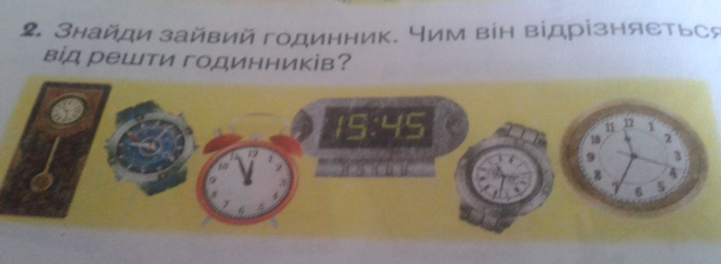 Сразу подумала электронные часы лишние. Прийти к учительнице на разборку и вместе обсудить задание